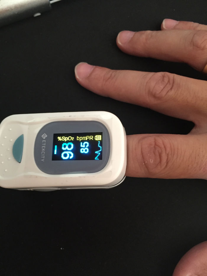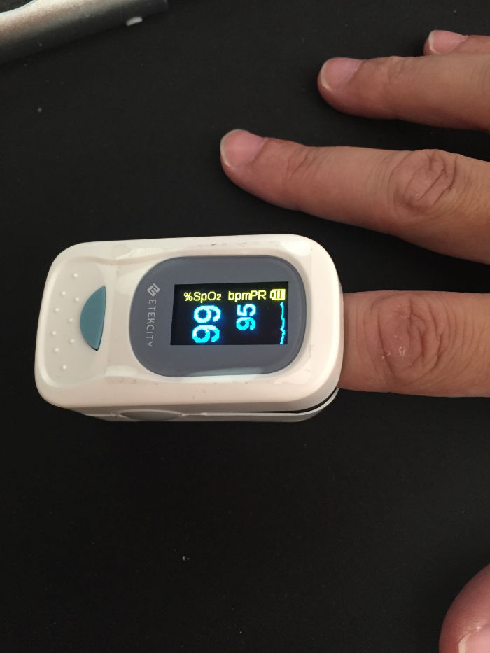 ¿Cómo puedo medir la saturación de oxigeno en sangre? Con un oxímetro, un aparato muy sencillo que se coloca en algún dedo de la mano y que mide la saturación de oxígeno a través de una luz infrarroja que pasa a través de los tejidos.