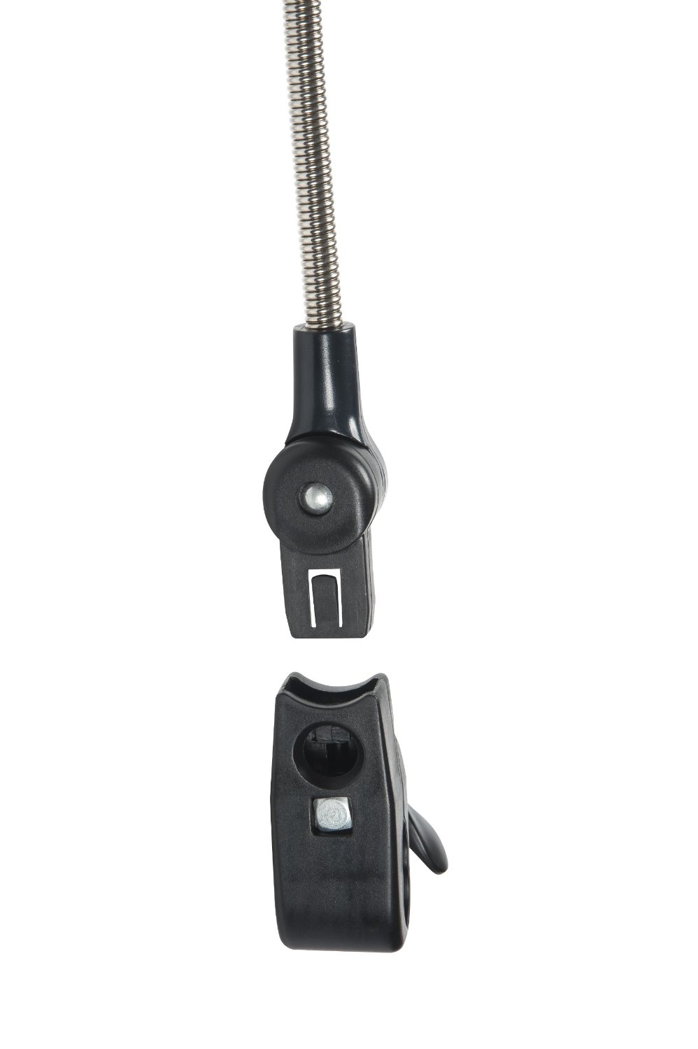 Se trata de una sombrilla universal que se adapta a todos los carritos y sillas de paseo. Dispone de un revestimiento Anti-UV 50+, el pie que se separa con un solo clic y es flexible. Funciona con un sistema de agarre con presión. La tela es de polyester y lo demás es de aluminio.