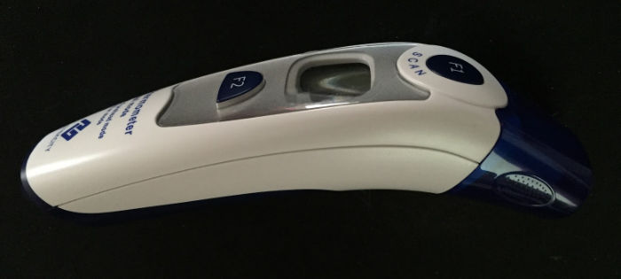 Está fabricado en plástico blanco y azul y tiene una pantalla retroiluminada que nos permite utilizarlo en la oscuridad, algo que nos puede venir muy bien si quieres medir la temperatura cuando tu hijo esté dormido. Si el niño tiene fiebre, sonora una alarma (cuando se exceda una temperatura de 37.5°C). En pocos segundos tendremos los resultados de la medida sin tener que tocar al niño en ningún momento.
